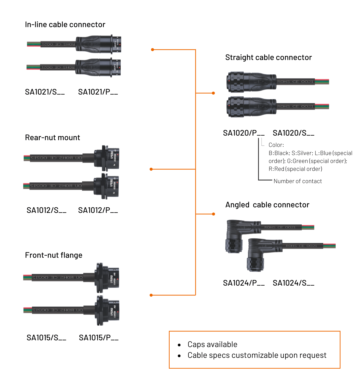 The SA10 connector with cable assembly is highly popular due to its compact size, high reliability, and versatile design. It is especially favored in applications such as LED lighting, security cameras & surveillance systems, controllers, agricultural devices, test and measurement equipment, etc.