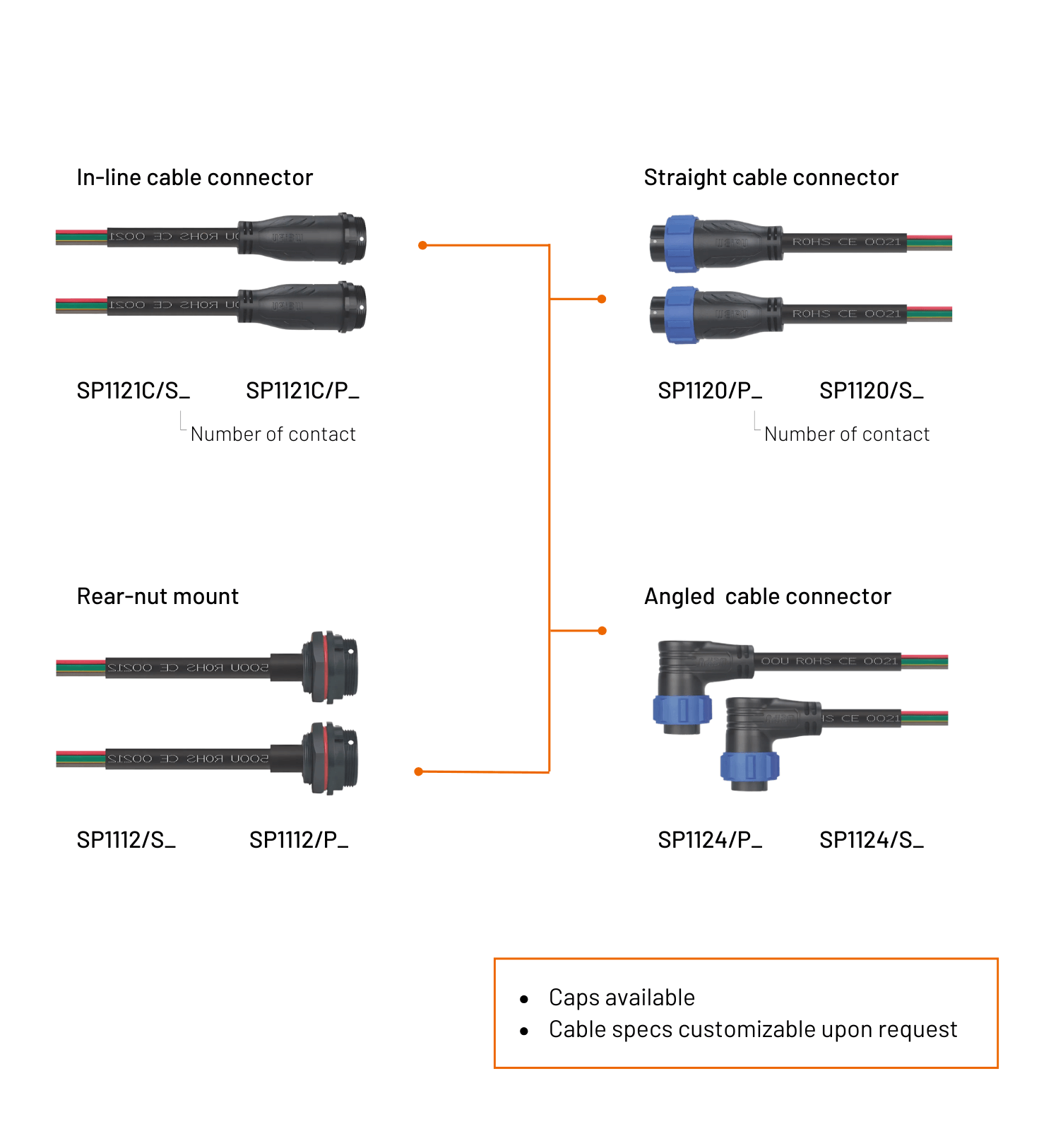 Designed for compact devices requiring IP68 protection, WEIPU SP11 series assemblies deliver secure, space-saving connections with solder-terminated pins and fully molded strain-relief for long-term durability. Each assembly is custom-built to your required cable length, OD, and connector configuration to ensure perfect compatibility and reliable performance in demanding environments such as outdoor instruments, sensors, testing devices, and industrial controllers.