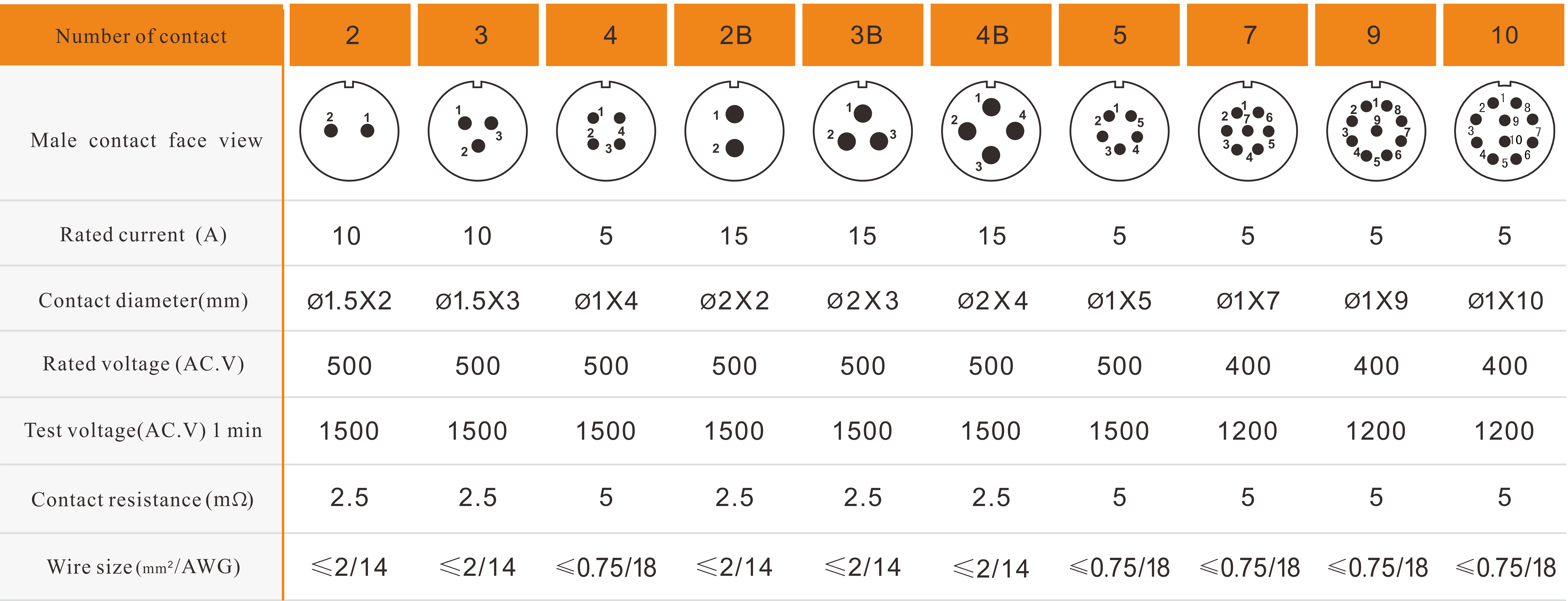 Applications: This connector is designed for space-consuming and harsh environments. It is widely used in many areas, such as outdoor testing or measuring equipment, communications fields, outdoor lighting, etc. Its strong industrial design enables it to support many harsh and humid environments. It is available in solder and crimp termination for different contact arrangements.