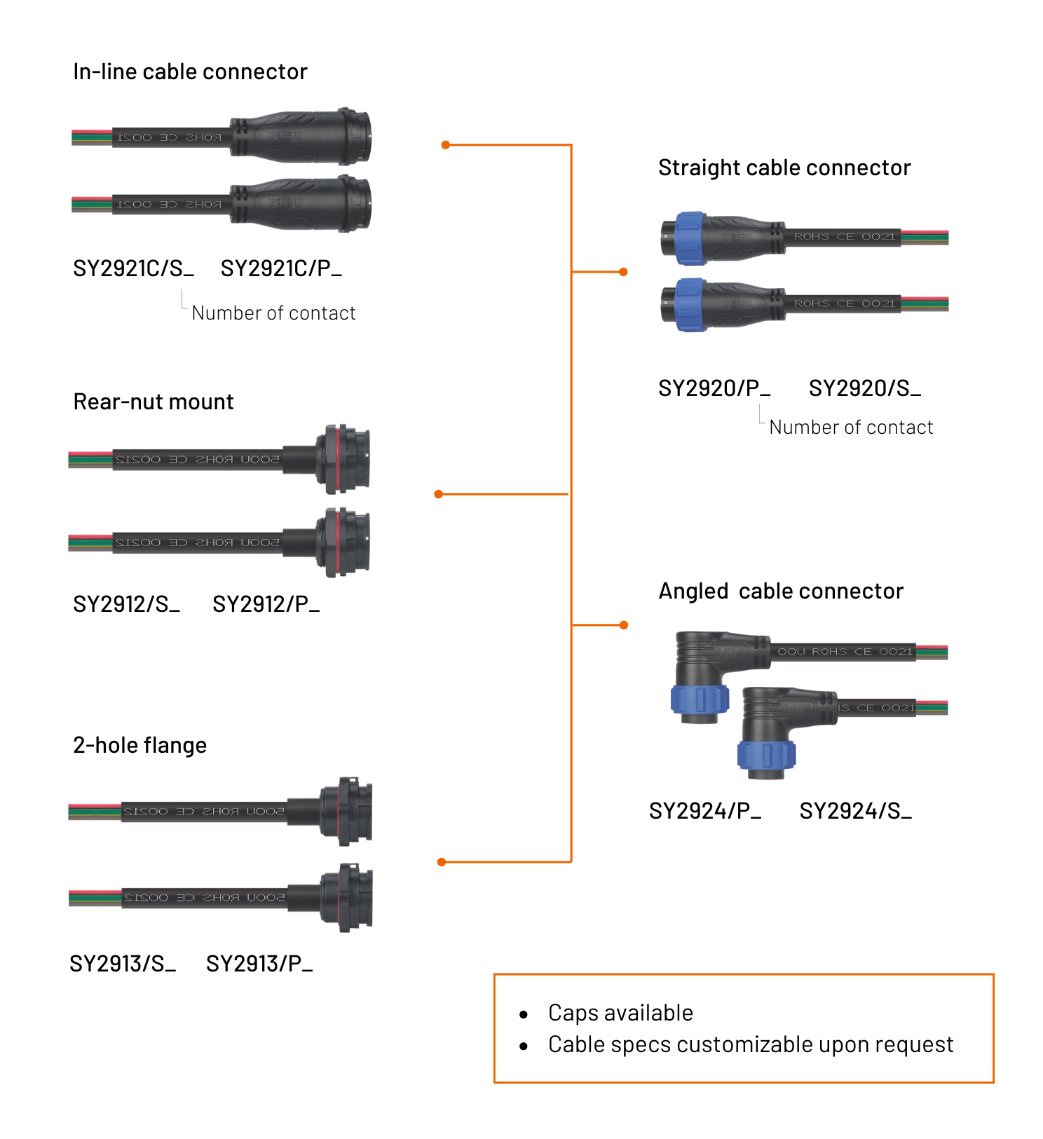 Ideal for outdoor or industrial use, including automation, communications, testing, motors, and ruggedized LED systems. The SY29 assembly offers a professional waterproof cabling solution to ensure signal reliability and ease of installation.