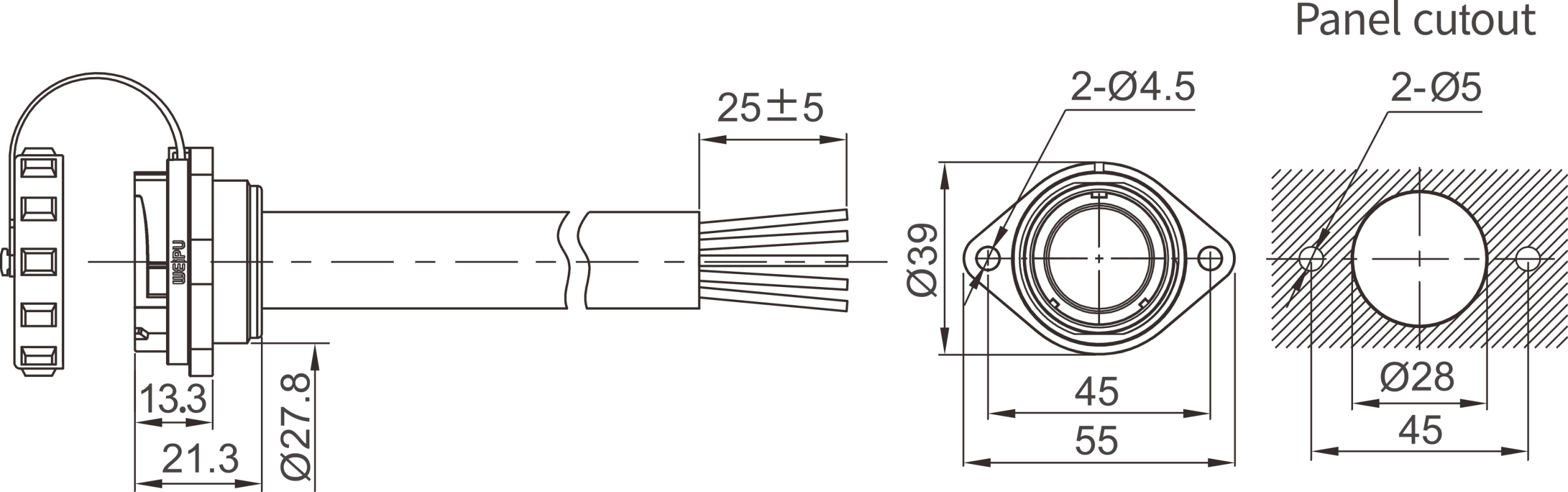 Have options for plug, inline cable connector, panel socket